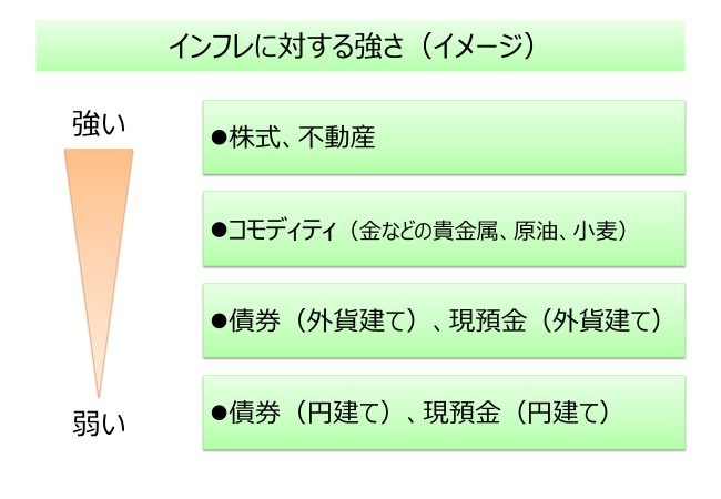 そのような時は「インフレに強いのは株式と不動産ですよ」とお話ししています。円建てのみならず、外貨建も含めて、やはりインフレに強いのは株式と不動産ですね。