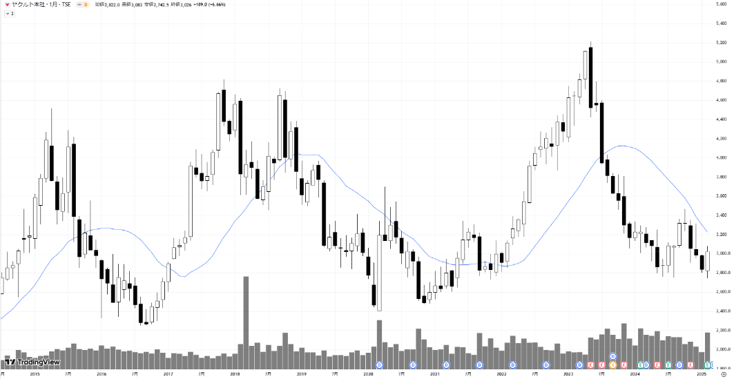 <2267ヤクルト本社 2014年8月~2025年2月 月足チャート>