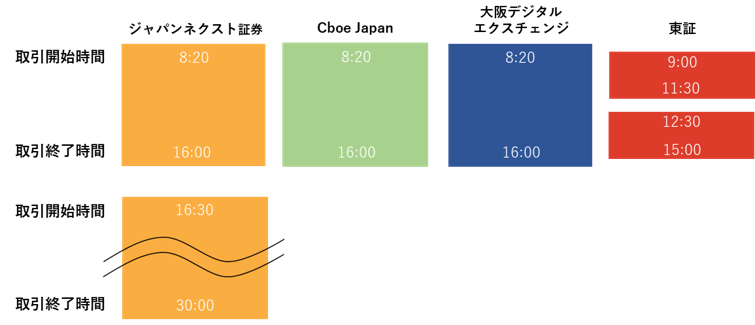 なお、PTSでの取引時間は証券会社毎に異なりますので、利用前に確認しましょう。