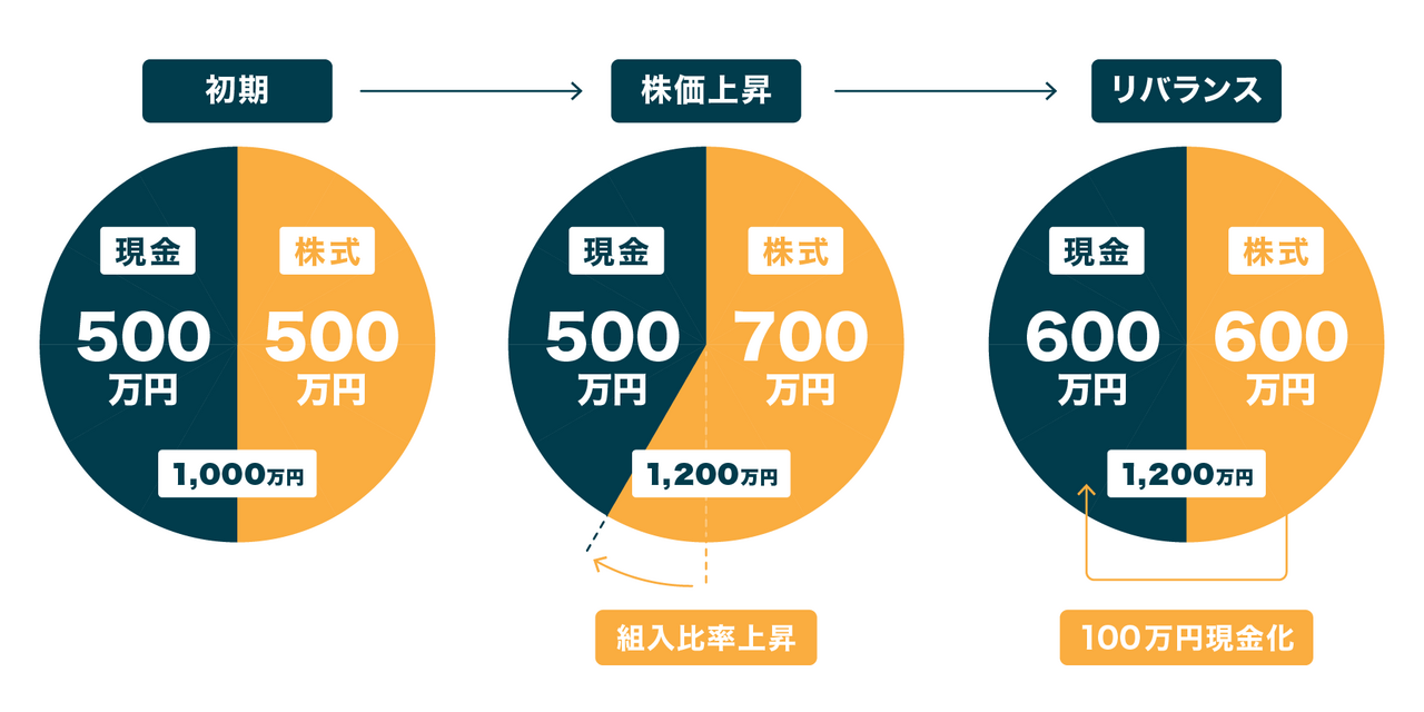 長期投資では、資産配分(アセット・アロケーション)を決めることが重要です。株式の割合が大きくなりすぎている場合、暴落が来る前に債券や現金の比率を増やすのもリスク管理の一環です(図2)。また、暴落時には株式の比率が下がるので、リバランスによって割安になった株を買うのもよいでしょう。